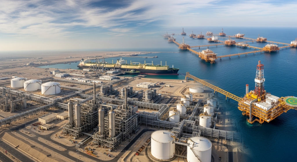LNG capacity expansion remains central. Yet the deeper signal lies in infrastructure investment, financial services growth, and capital expenditure reinforcing the wider economy.